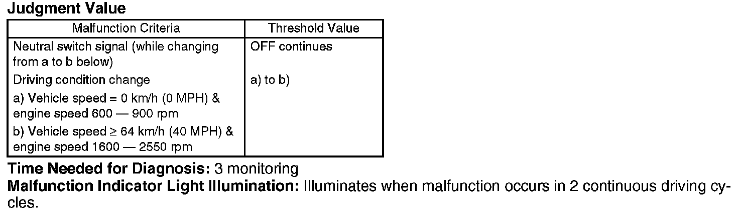 Judge NG when the malfunction criteria are completed 3 time or more after the neutral SW change. And clear NG if there is change in the neutral SW.