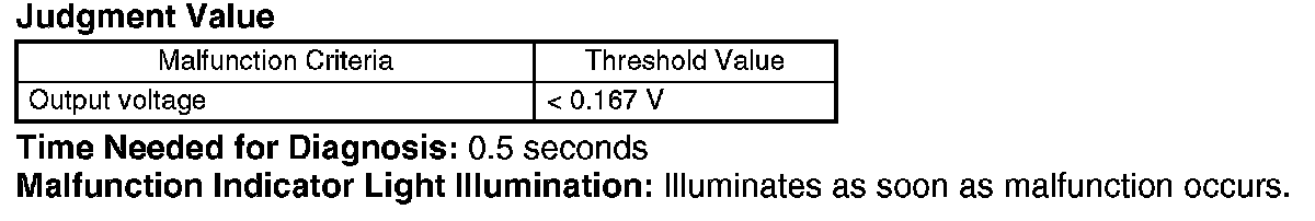 Judge NG when the continuous time of completing the malfunction criteria becomes more than the time needed for diagnosis (0.5 seconds). Judge OK and clear NG when the malfunction criteria are not completed.
