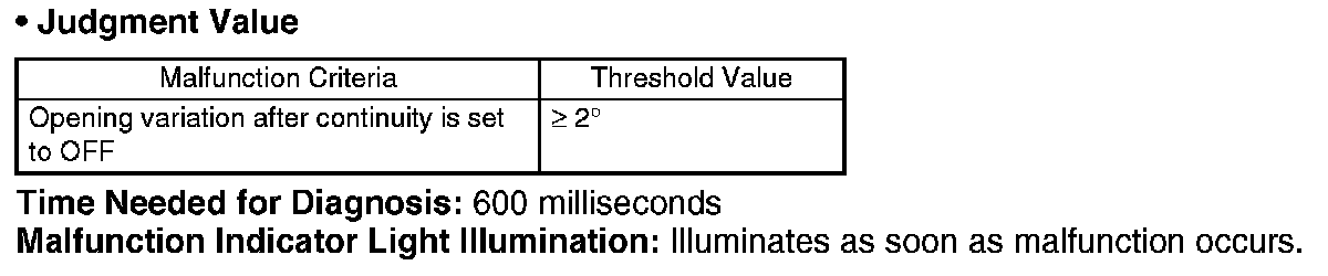 Judge NG when the continuous time of completing the malfunction criteria becomes more than 0.5 seconds.