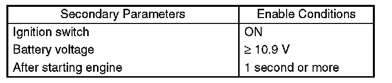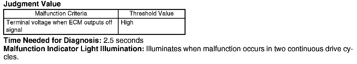 Judge NG when the continuous time of completing the malfunction criteria becomes more than time needed for diagnosis (2.5 seconds). Judge OK and clear the NG when the malfunction criteria are not completed.