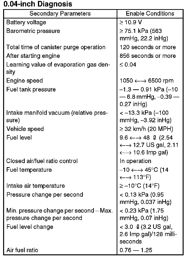 - Perform the diagnosis only once in more than 856 seconds after the engine start at the constant driving speed of 32 km/h (20 MPH) or more.