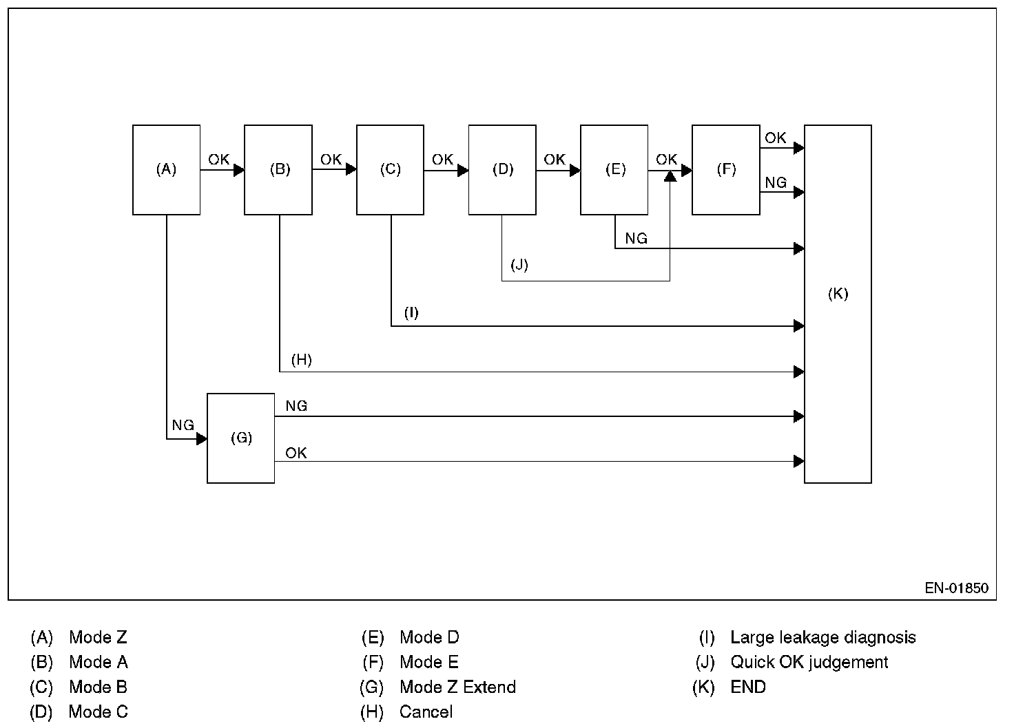 Make OK judgment in 3 seconds after Mode Z started, and change to Mode A if OK. Both diagnostic method and judgment value are the same as PCV normality judgment.