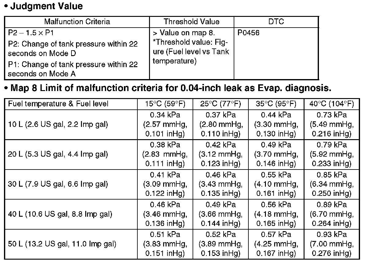 In the case of small leakage diagnosis, the tank pressure variation is very small, that is, 0.13 to 0.27 kPa (1 to 2 mmHg, 0.04 to 0.08 inHg) and the fuel tank pressure sensor is equipped.
