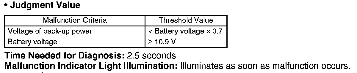 Judge NG when the back-up voltage becomes smaller than the battery voltage.