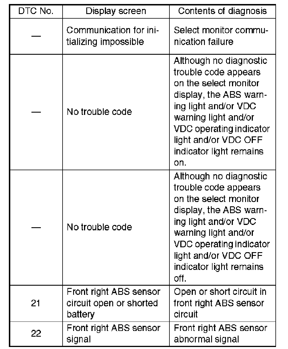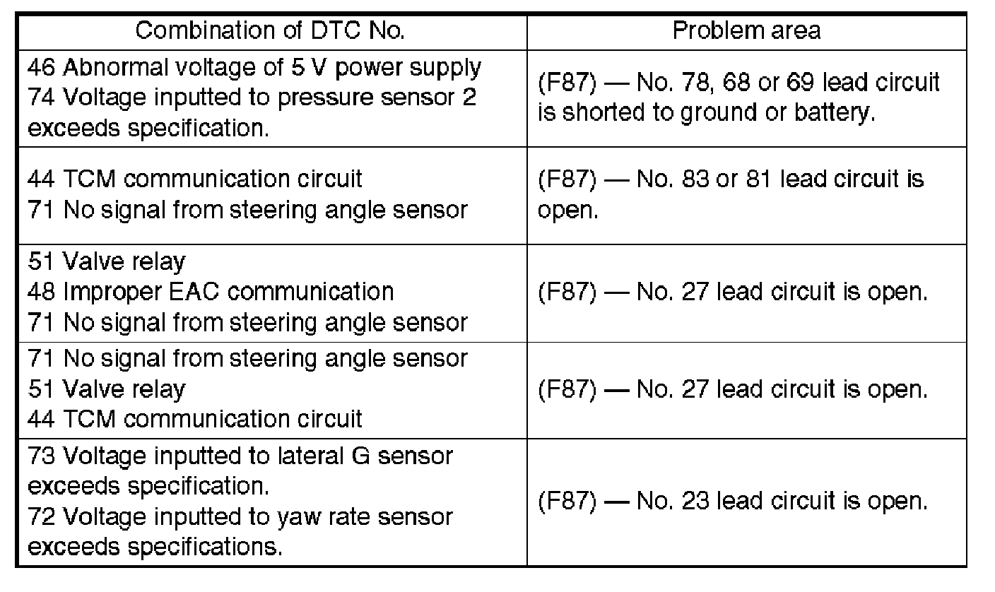 If any of he following multiple diagnostic trouble codes (DTCs) are present in memory, check the area corresponding to the first diagnostic trouble code (DTC). If no problem is detected, check the areas corresponding to the other diagnostic trouble codes (DTCs) in order of their appearance