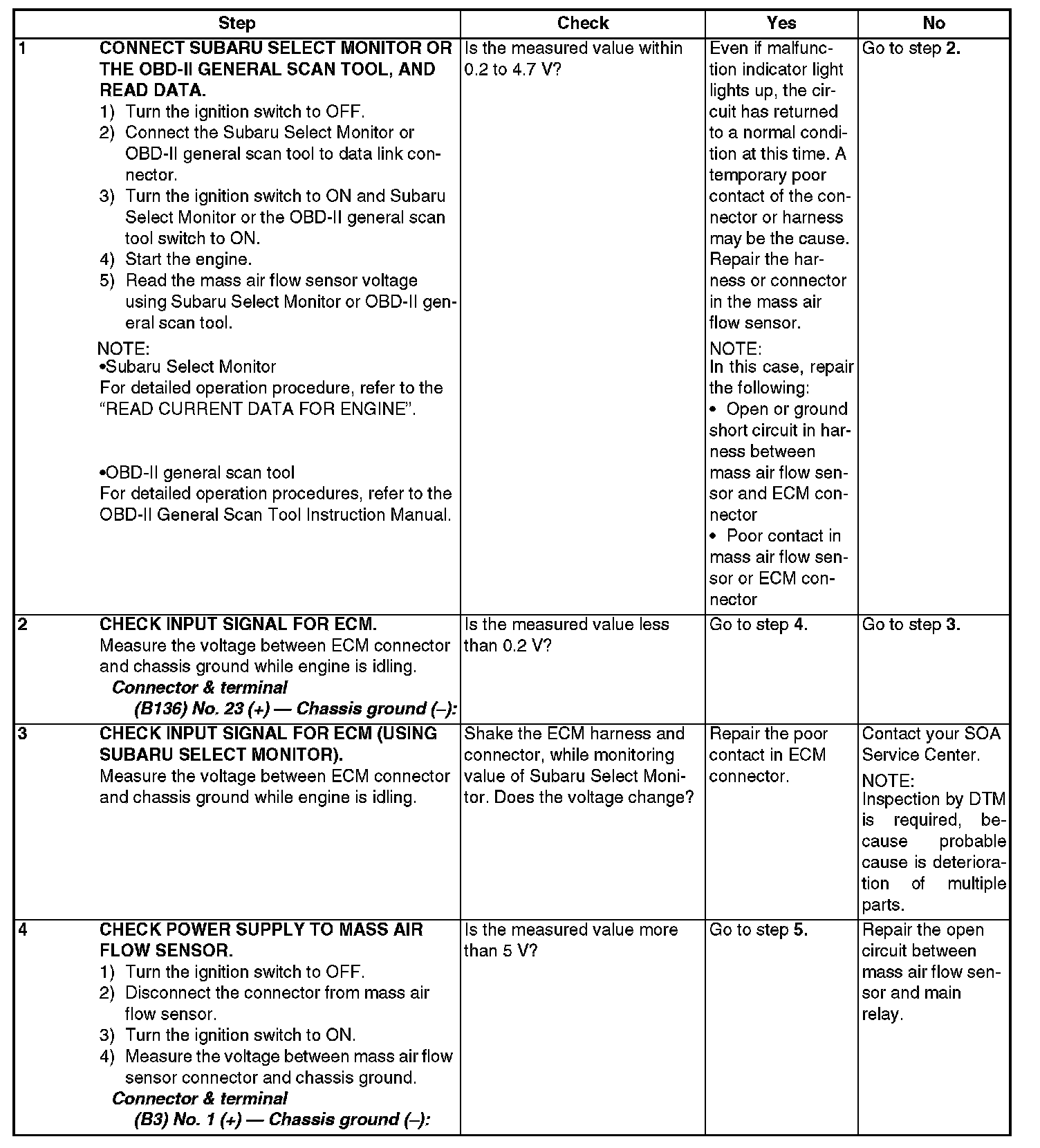 DTC P0102 - MASS OR VOLUME AIR FLOW CIRCUIT LOW INPUTDTC DETECTING CONDITION