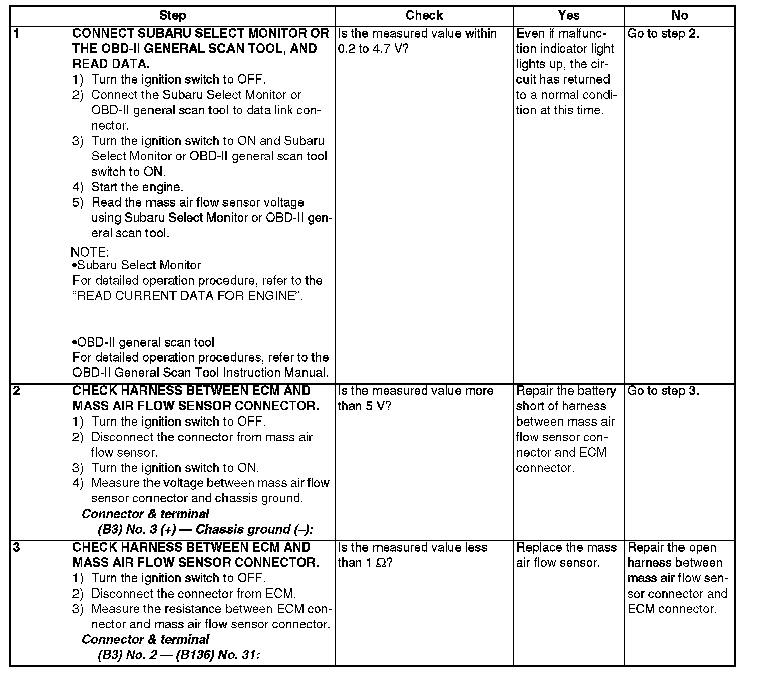 DTC P0103 - MASS OR VOLUME AIR FLOW CIRCUIT HIGH INPUTDTC DETECTING CONDITION