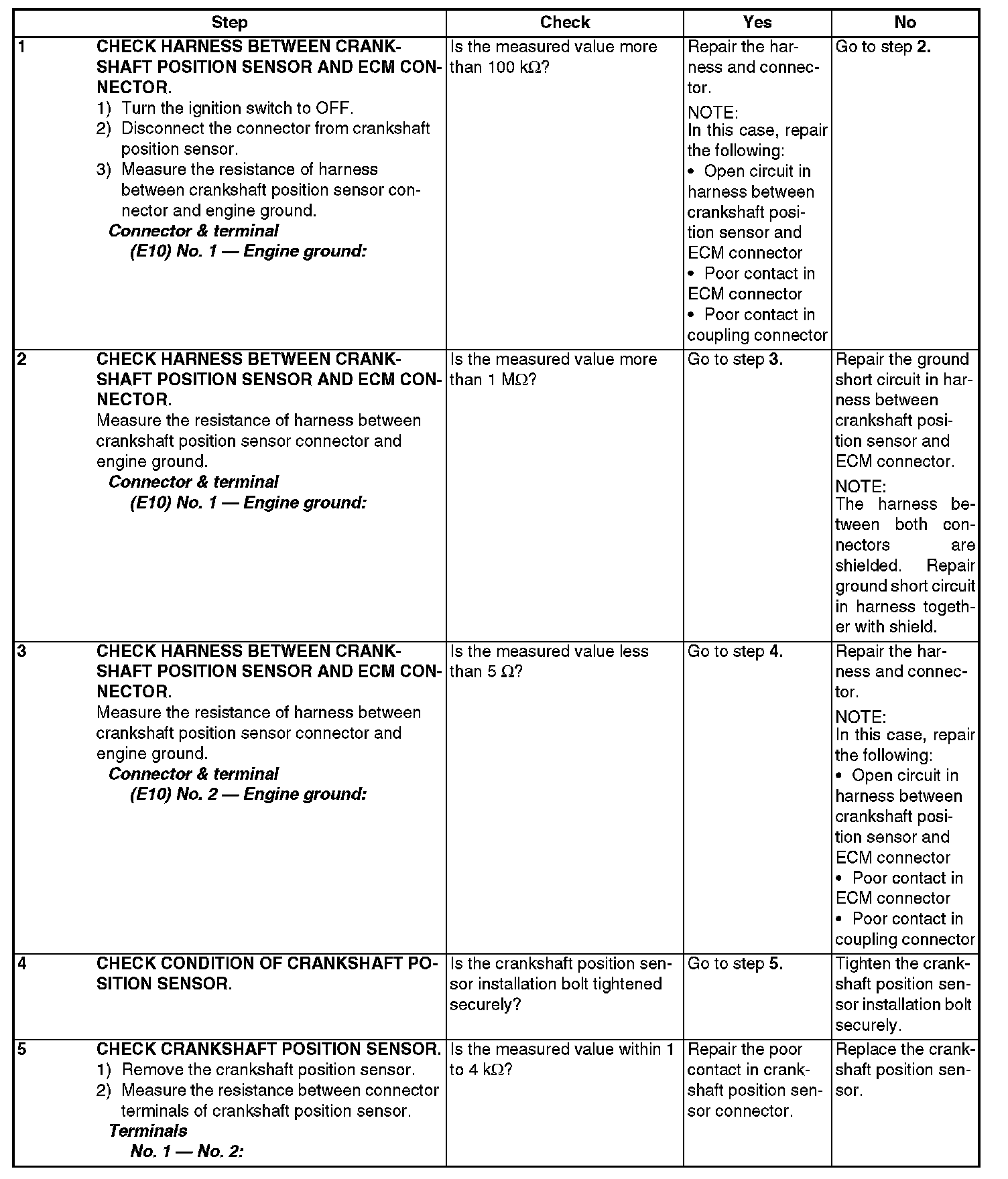 DTC P0335 - CRANKSHAFT POSITION SENSOR "A" CIRCUITDTC DETECTING CONDITION