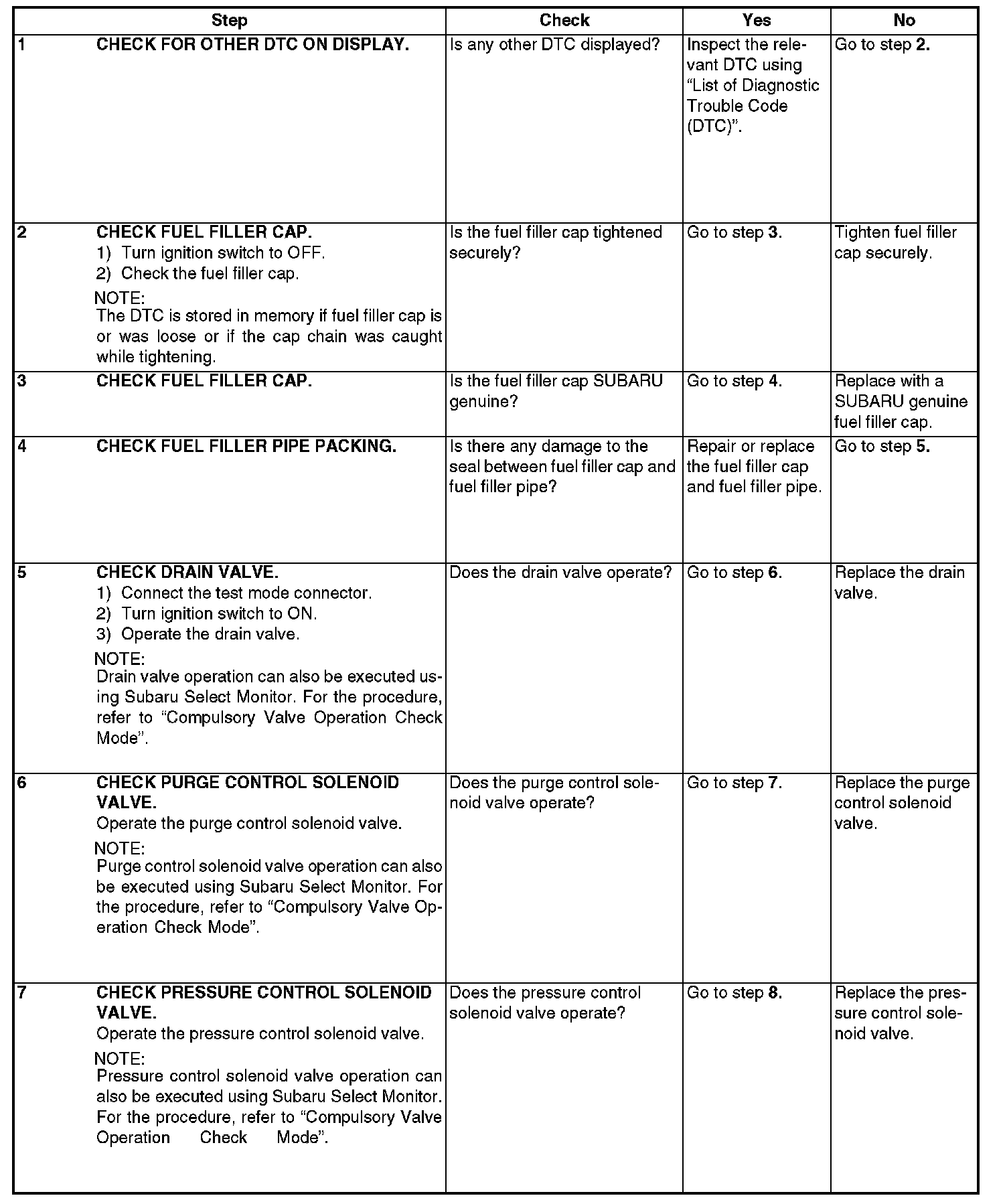 - There is a hole of more than 1.0 mm (0.04 in) dia. in evaporation system or fuel tank.
