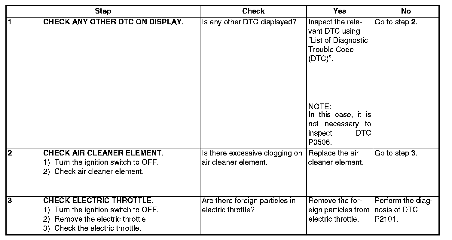 DTC P0506 - IDLE CONTROL SYSTEM RPM LOWER THAN EXPECTEDDTC DETECTING CONDITION