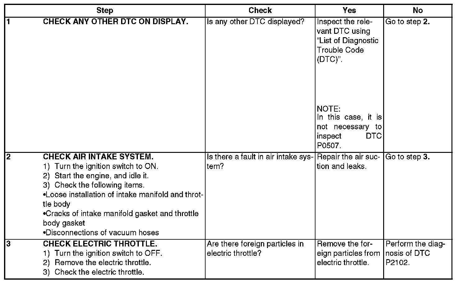 DTC P0507 - IDLE CONTROL SYSTEM RPM HIGHER THAN EXPECTEDDTC DETECTING CONDITION