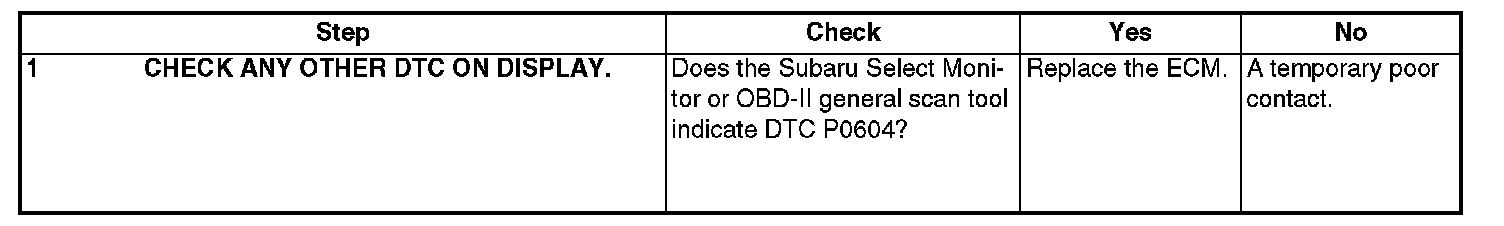 DTC P0604 - INTERNAL CONTROL MODULE RANDOM ACCESS MEMORY (RAM)ERRORDTC DETECTING CONDITION