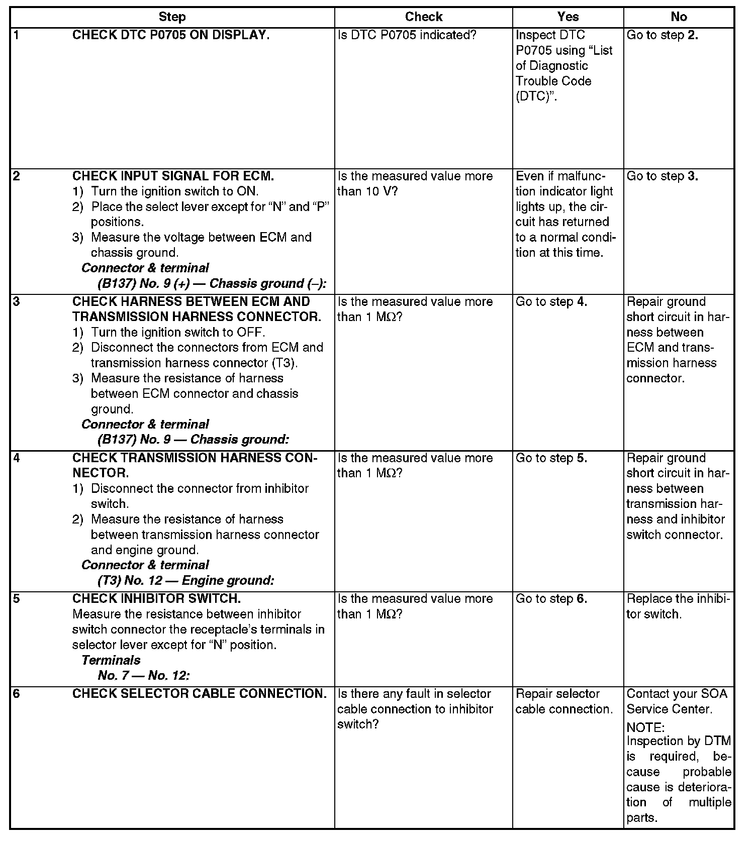DTC P0851 - NEUTRAL SWITCH INPUT CIRCUIT LOW (AT MODEL)DTC DETECTING CONDITION