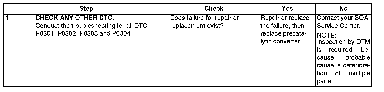 DTC P1301 - MISFIRE DETECTED (HIGH TEMPERATURE EXHAUST GAS)DTC DETECTING CONDITION