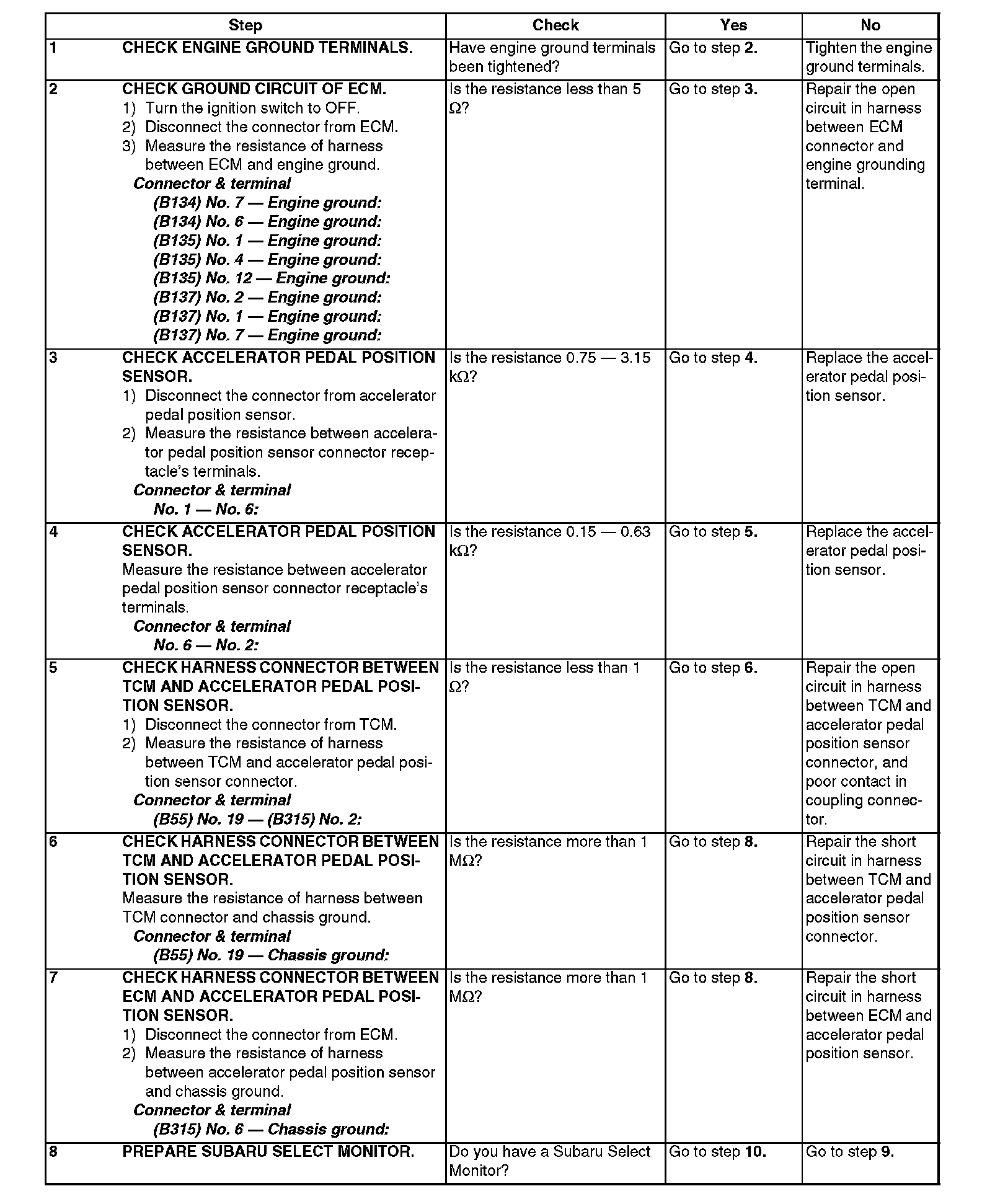 DTC P1708 - THROTTLE POSITION SENSOR CIRCUIT LOW INPUT -Steps 1-8: