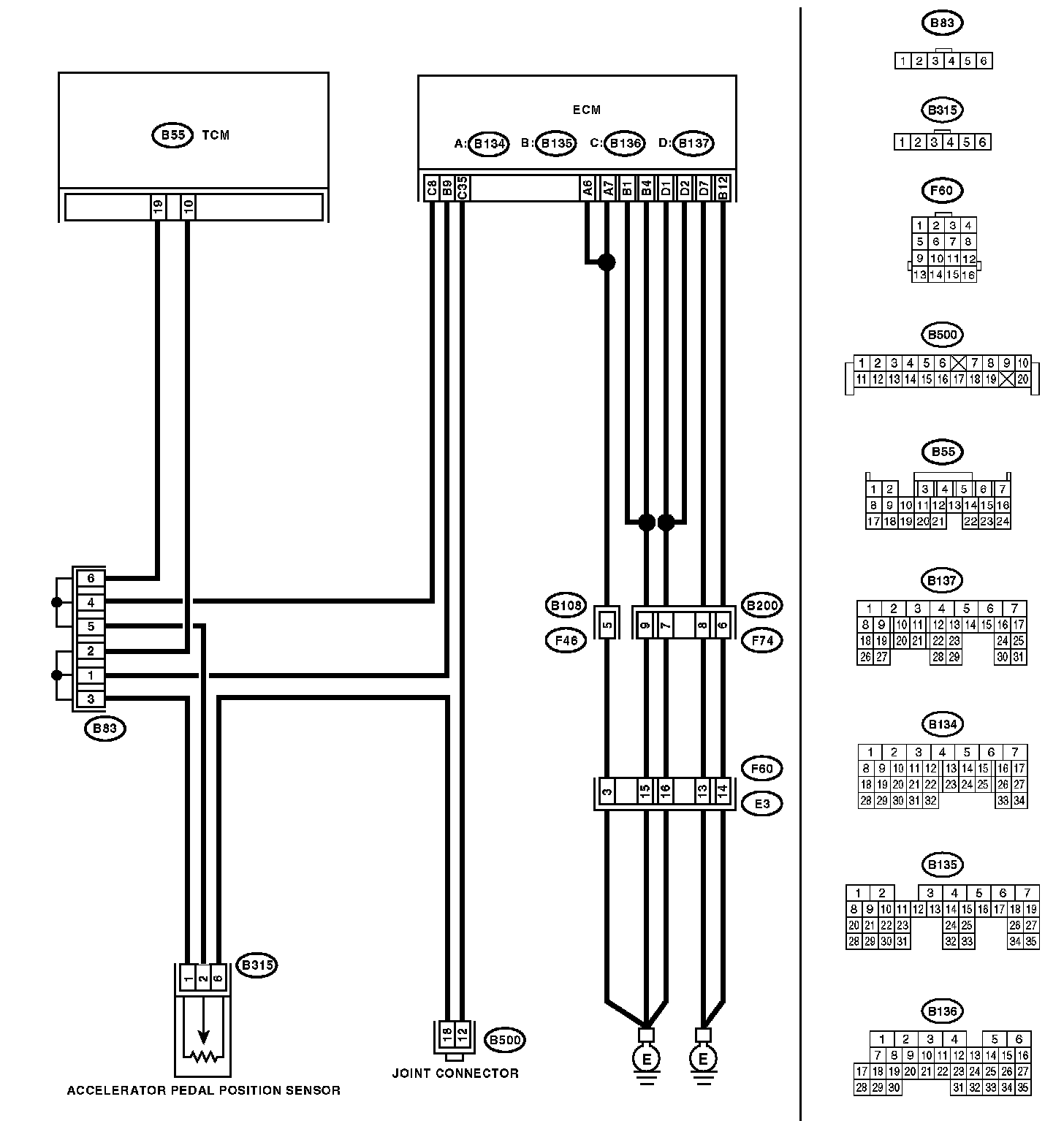 The input signal circuit of accelerator pedal position sensor is open or shorted.