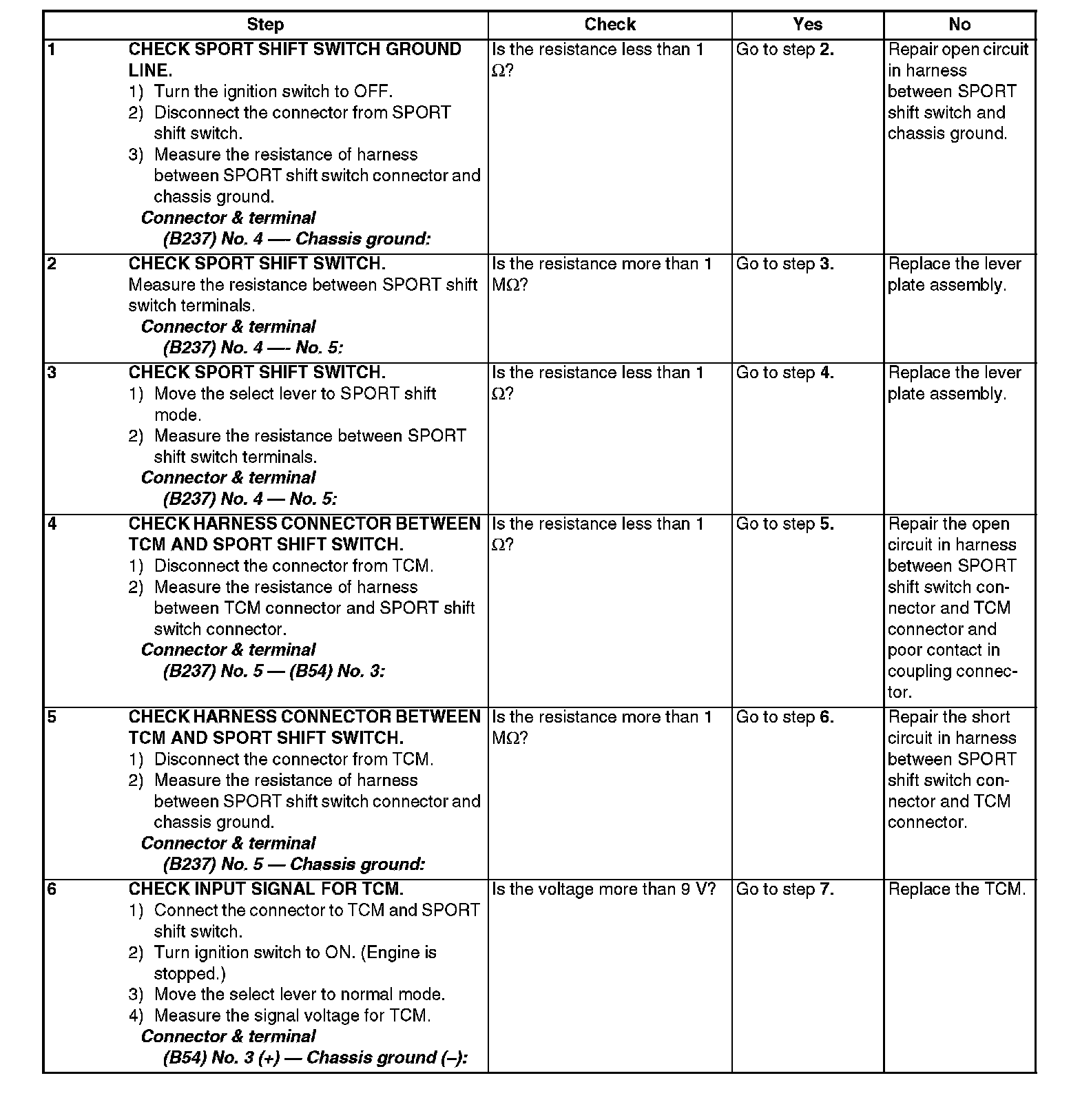 The SPORT shift switch input signal circuit is open or shorted.