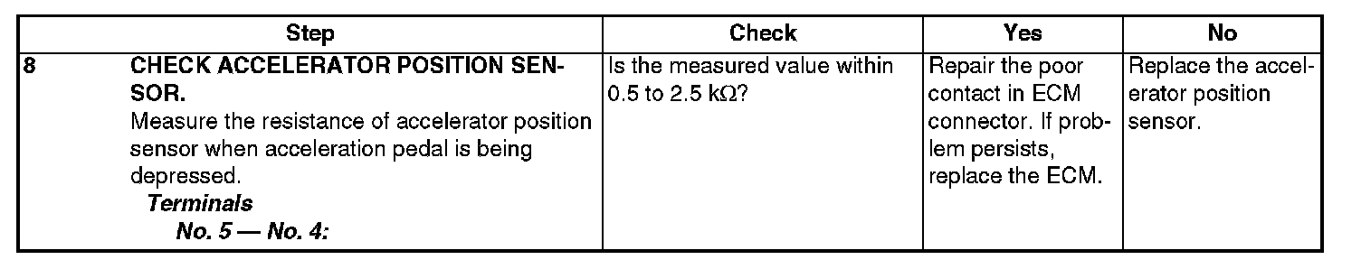 DTC P2122 - THROTTLE/PEDAL POSITION SENSOR/SWITCH "D" CIRCUIT LOW INPUTDTC DETECTING CONDITION