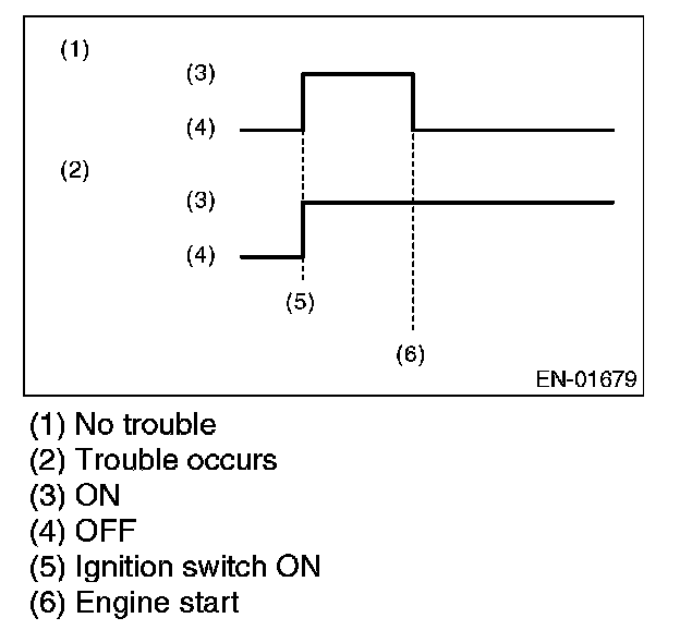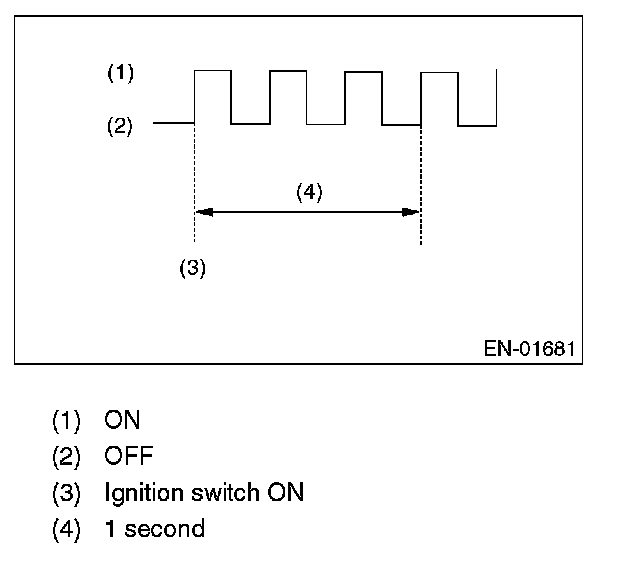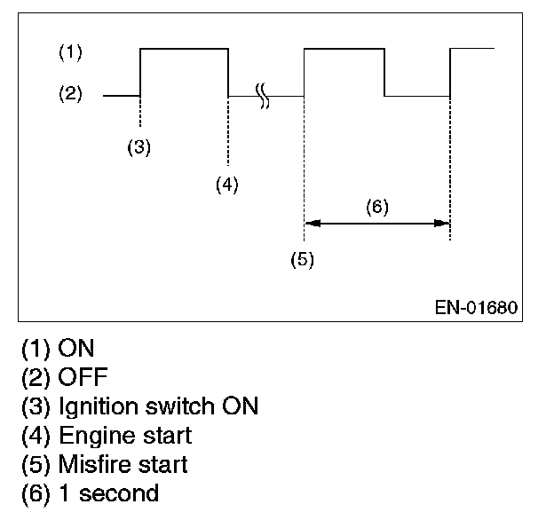 4. When the ignition switch is turned to ON (engine off) or to START with the test mode connector connected, the malfunction indicator light blinks at a cycle of 3 Hz.
