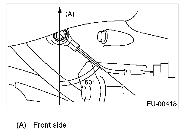 NOTE: Extraction area of the knock sensor cord must be positioned at a 60 ° angle relative to the engine rear.