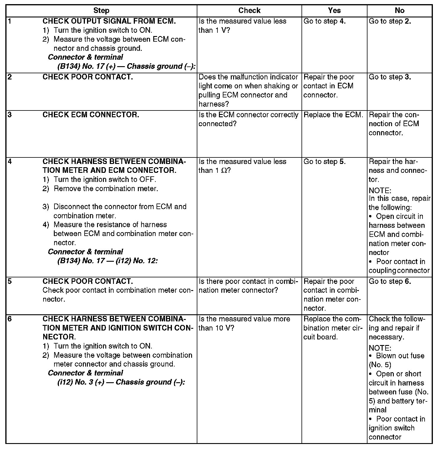 MALFUNCTION INDICATOR LIGHT DOES NOT COME ONDIAGNOSIS: