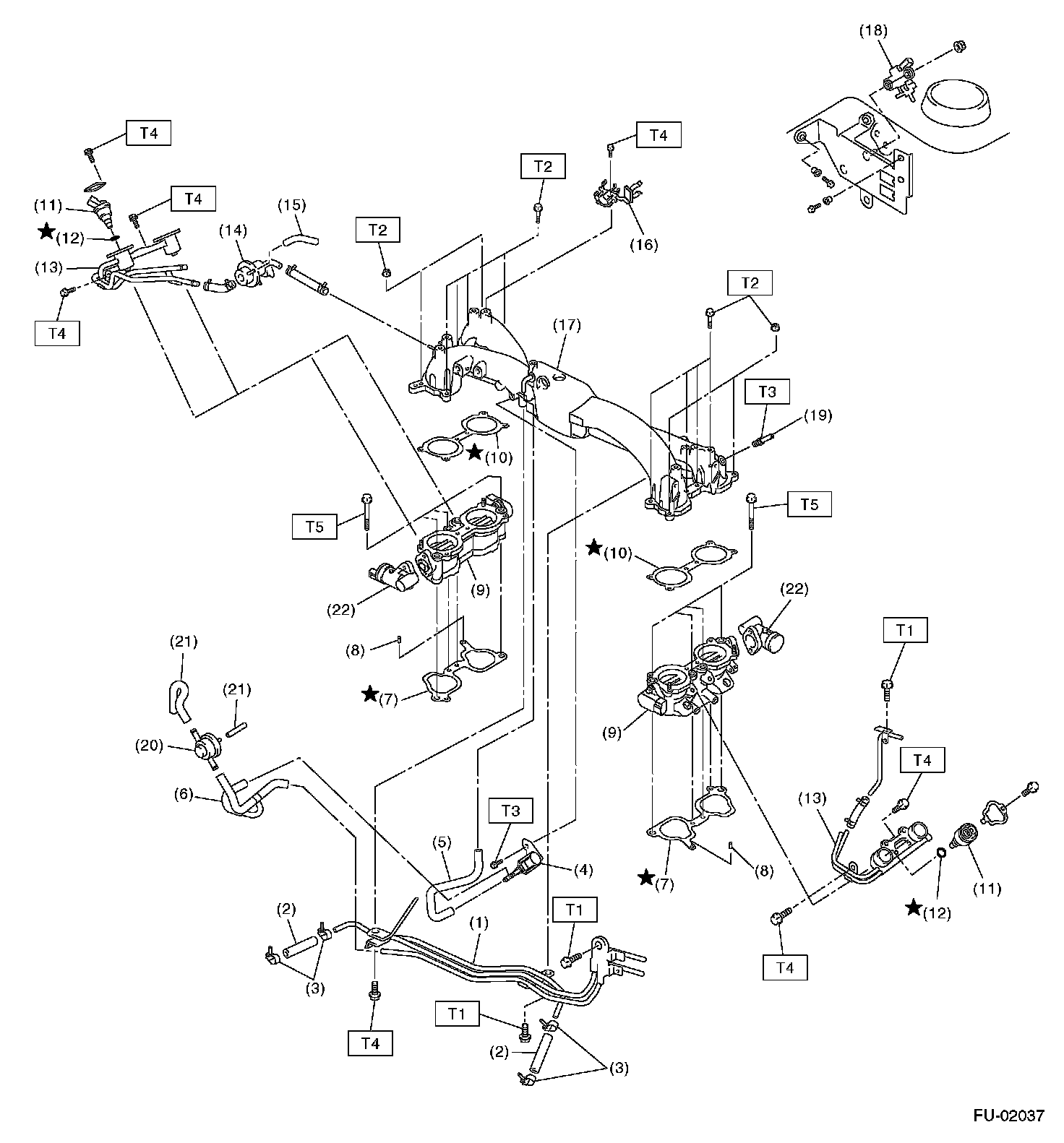17. Install the air cleaner upper cover and air intake duct as a unit.
