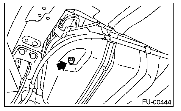 Set a container under the vehicle and remove drain plug from fuel tank.