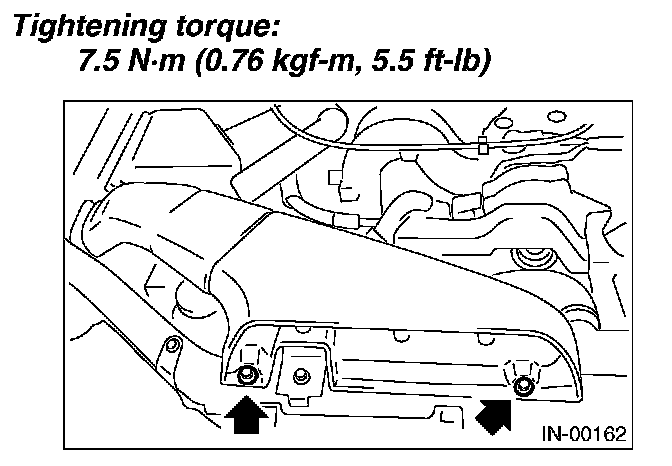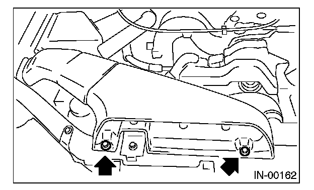 Remove the bolts which install the air intake duct on front side of body.