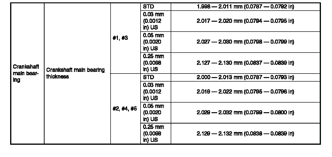 0.05 mm (0.0020 inch) US 1.514 - 1.522 mm (0.0596 - 0.0599 inch)