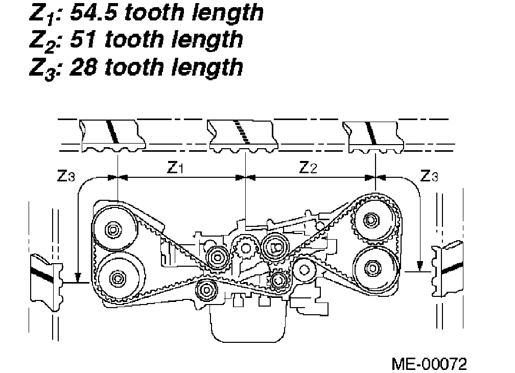 Using white paint, put alignment and/or arrow marks on the timing belts in relation to the sprockets