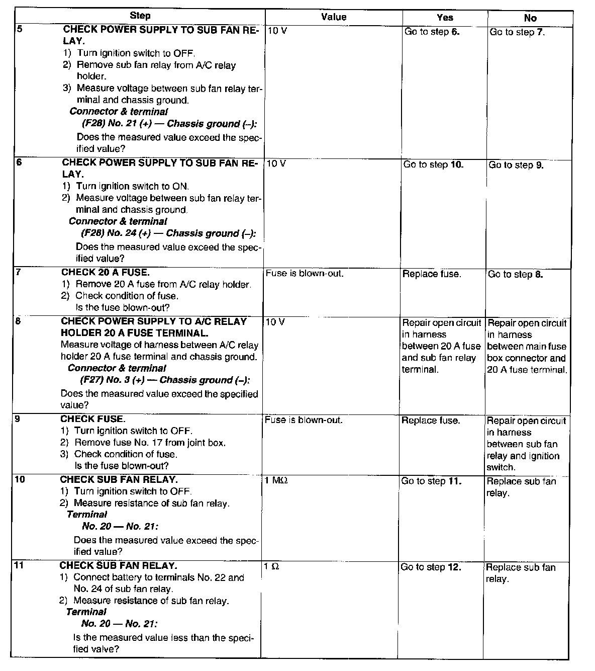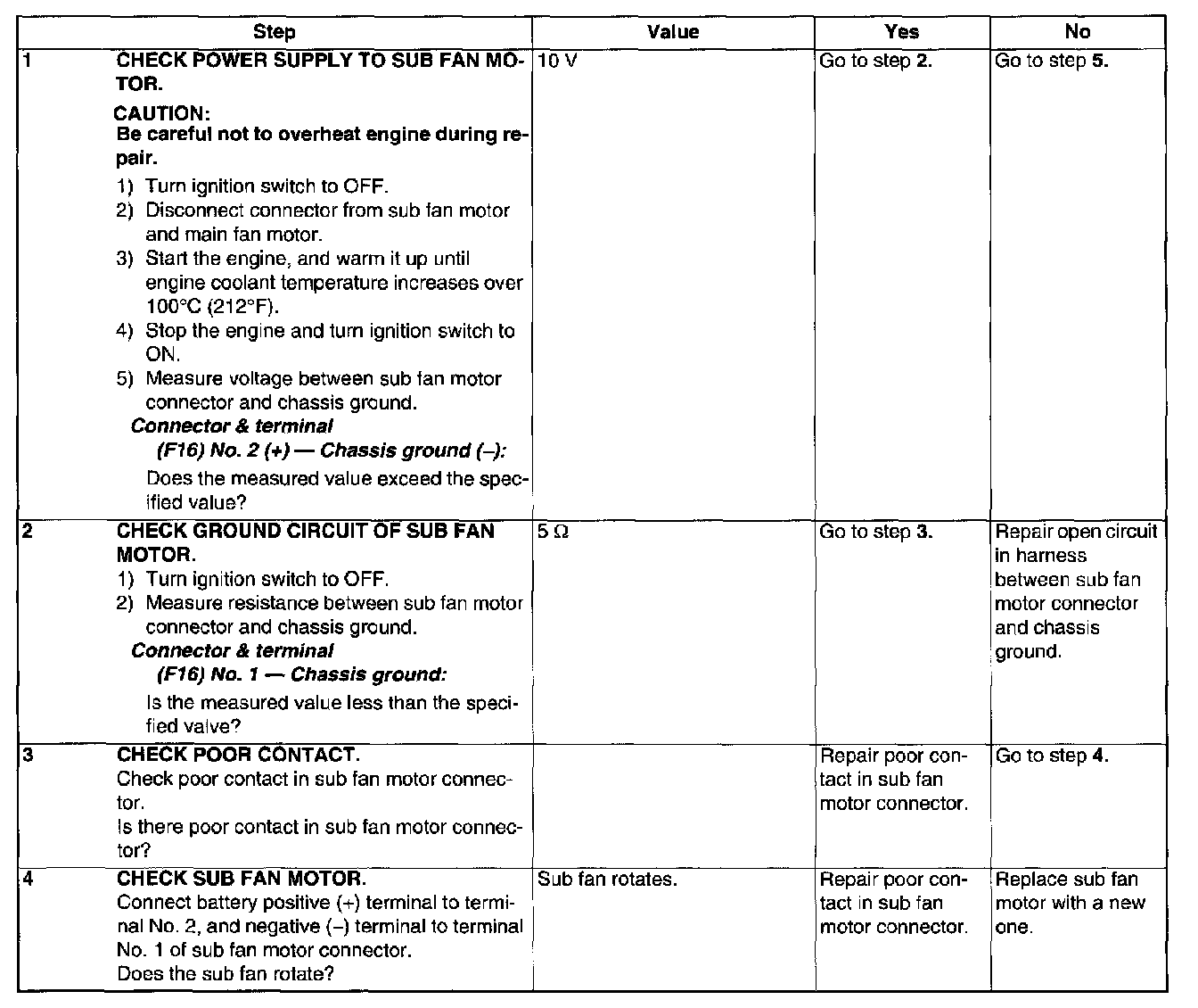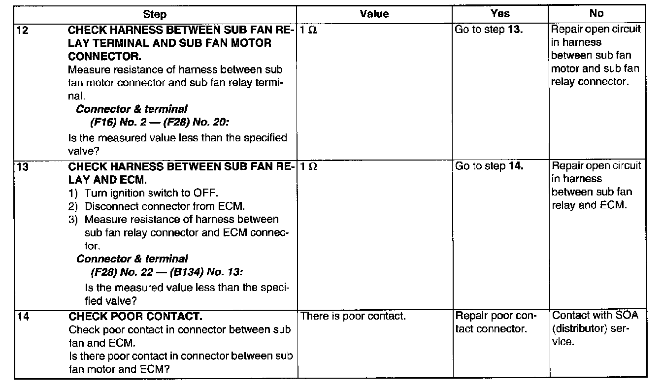 ^ Radiator sub fan does not rotate under conditions (1) and (2) above.