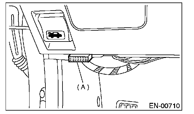 2. Open the cover and connect the OBD-II general scan tool to the data link connector (A) located in the lower portion of the instrument panel (on the driver's side).