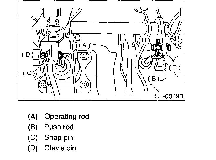 3. Remove the snap pins which secure lever to push rod and operating rod.