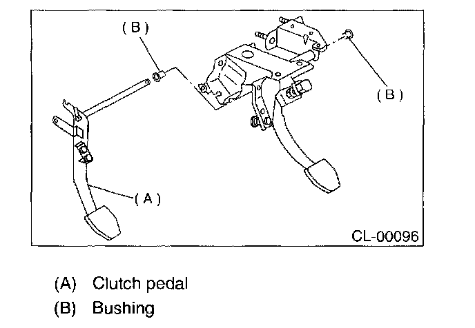 2. Clean inside of bores of clutch pedal and brake pedal, apply grease, and set bushings into bores.