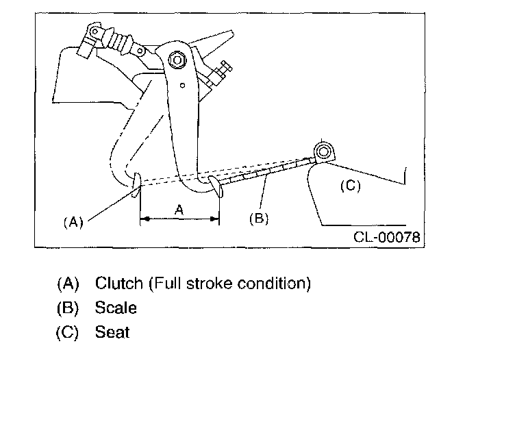 ^ Measure the length between seat cushion front end and center portion of clutch pedal.