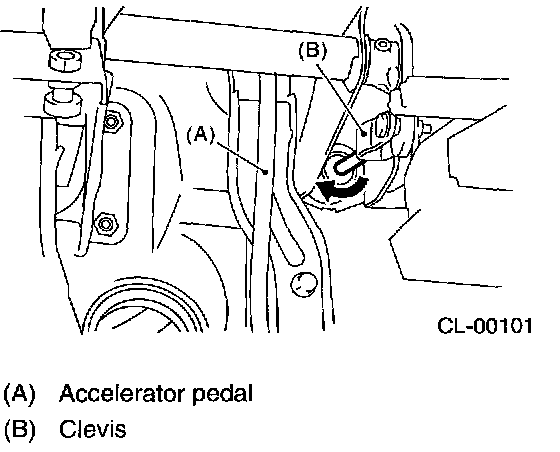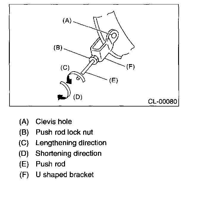 6. Turn the push rod counter clockwise to lengthen until clutch pedal contacts to stopper bolt.