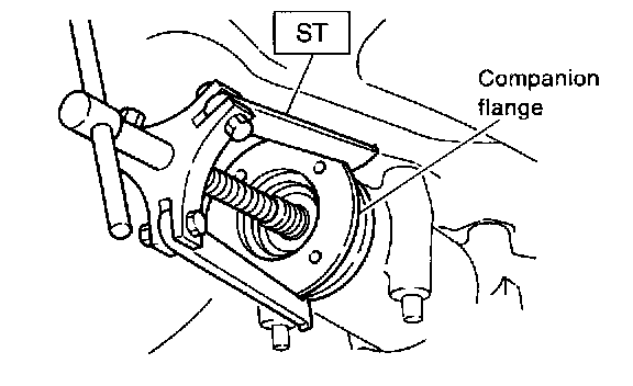 9. Remove self-locking nut while holding companion flange with ST.