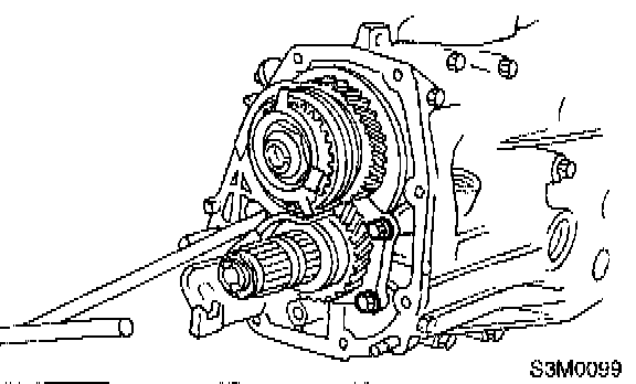 15. Turn transmission main shaft several times while tapping around retainer lightly with plastic hammer.