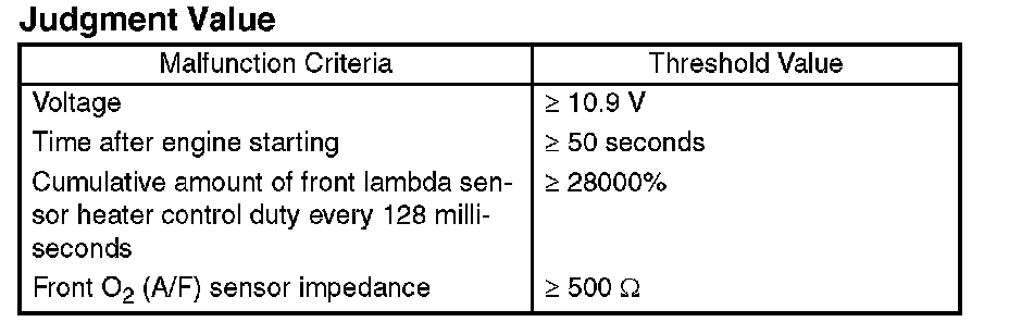 - Front oxygen (A/F) sensor activation judgment: Front oxygen (A/F) sensor full activation is not complete, or front oxygen (A/F) sensor half activation is not complete.