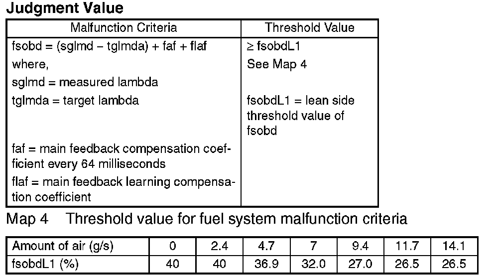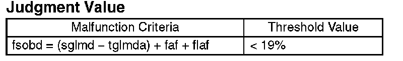 Judge that the fuel system malfunction occurs when the time during completing the malfunction criteria continues 30 seconds or more by comparing the diagnosed value (fsobd) with threshold value.