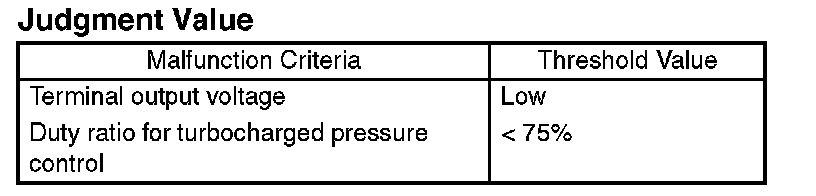 Detect the open or short circuit of wastegate control solenoid valve. Judge NG when the terminal output voltage remains Low during outputting the duty signal.