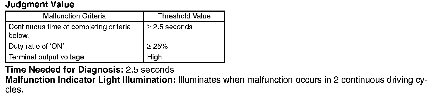 Detect open or short circuit of purge control solenoid valve. Judge NG when ECM output level is different from actual terminal level.