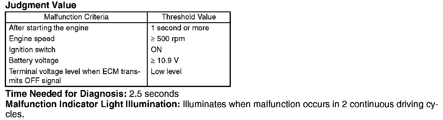 Judge NG when the cumulative time of completing the malfunction criteria becomes more than 2.5 seconds.
