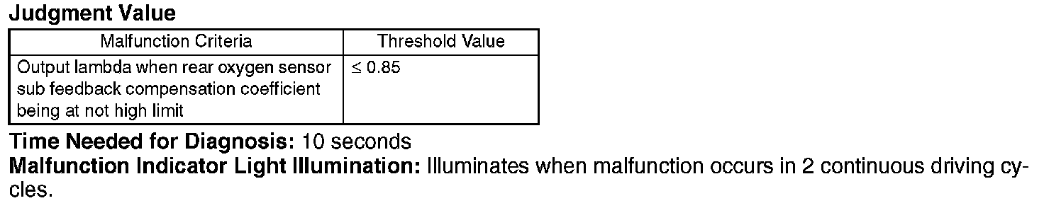 Judge NG when the continuous time of completing the malfunction criteria becomes more than the time needed for diagnosis (10 seconds). Judge OK and clear NG when the malfunction criteria are not completed.