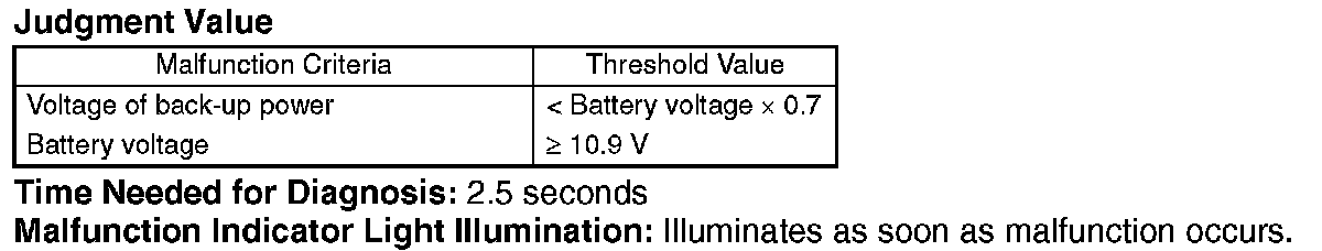 Detect open or short circuit of the back-up voltage circuit. Judge NG when the back-up voltage becomes smaller than the battery voltage.