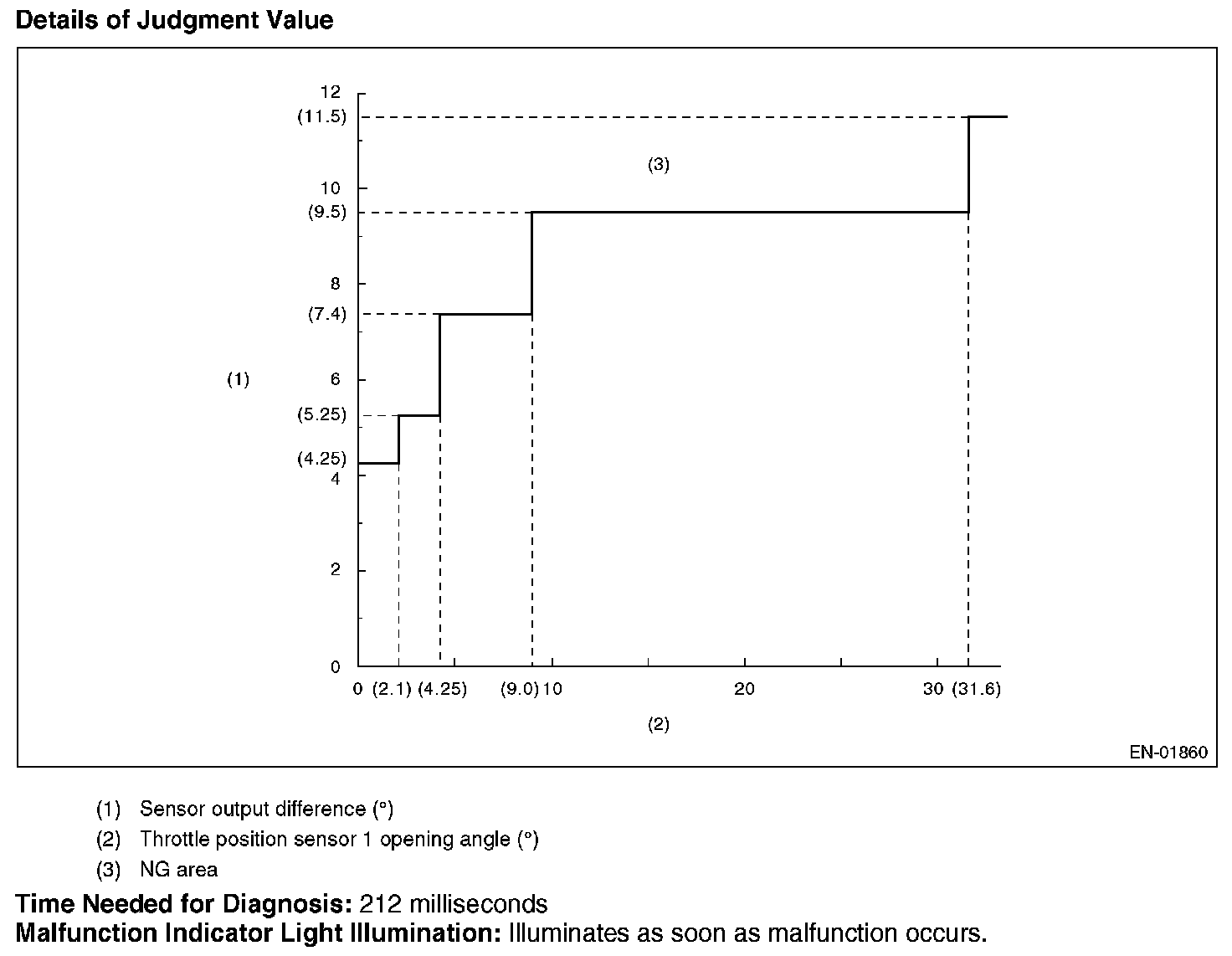 Judge NG when the signal level of throttle position sensor 1 is different from the throttle position sensor 2.
