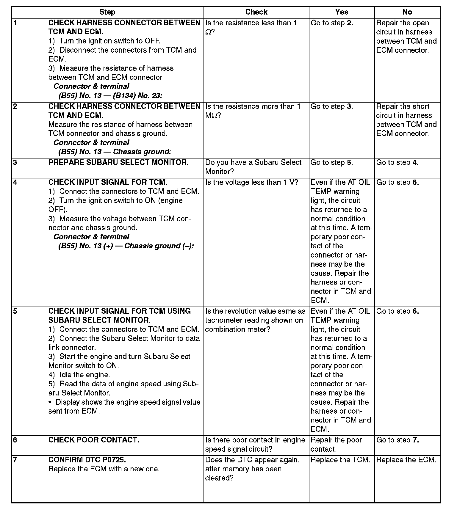 DTC P0725 -ENGINE SPEED INPUT CIRCUIT-