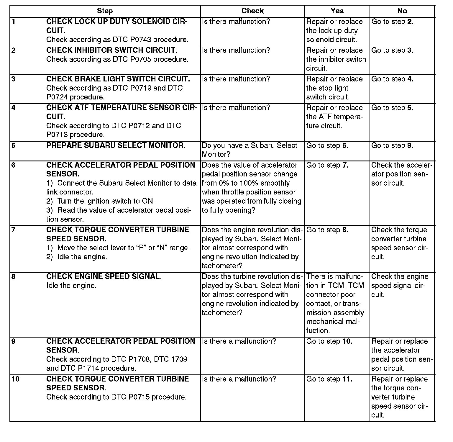 DTC P0741 -TORQUE CONVERTER CLUTCH CIRCUIT PERFORMANCE OR STUCK OFF-