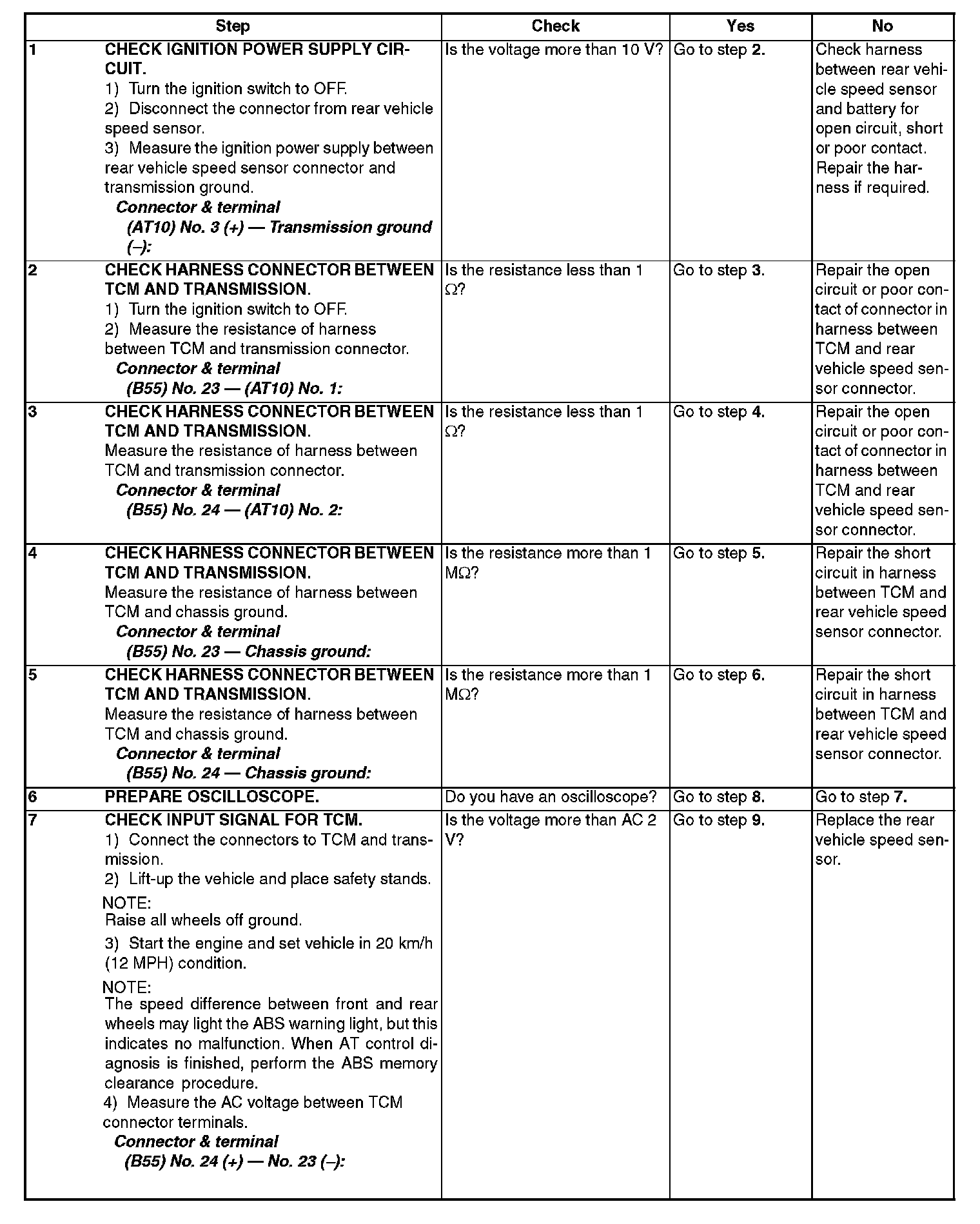 DTC P1706 -AT VEHICLE SPEED SENSOR CIRCUIT MALFUNCTION (REAR WHEEL)-
