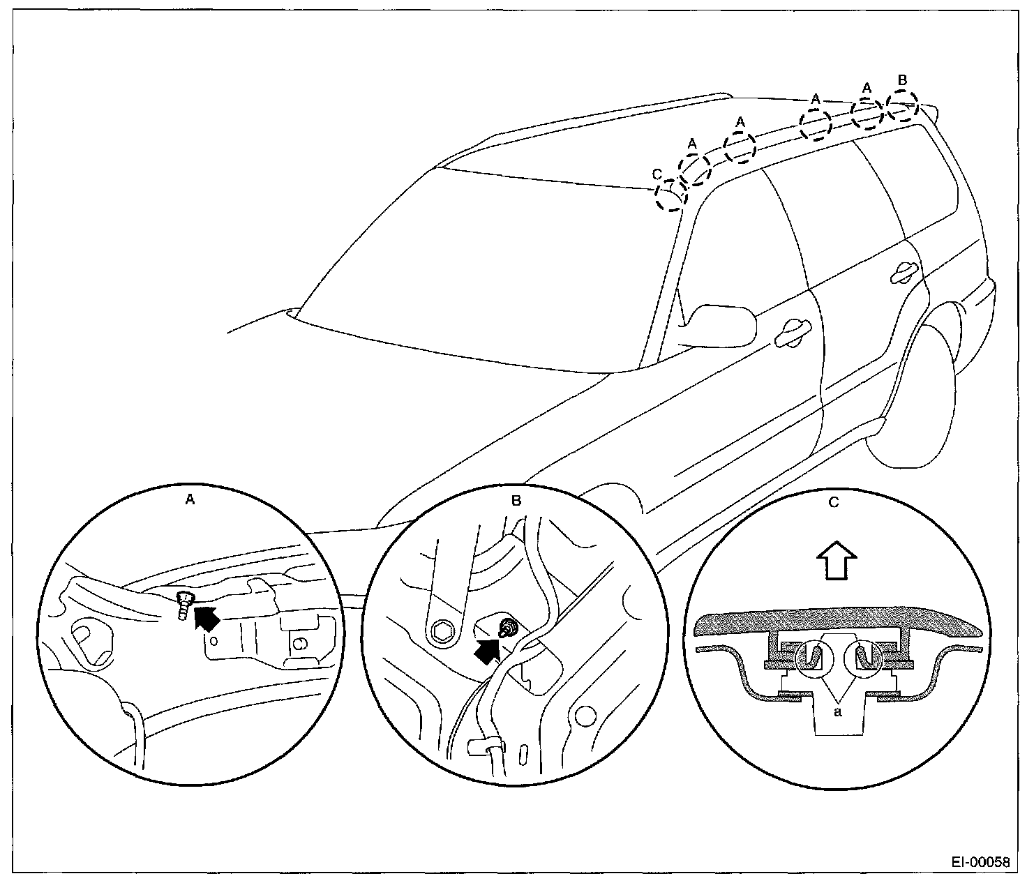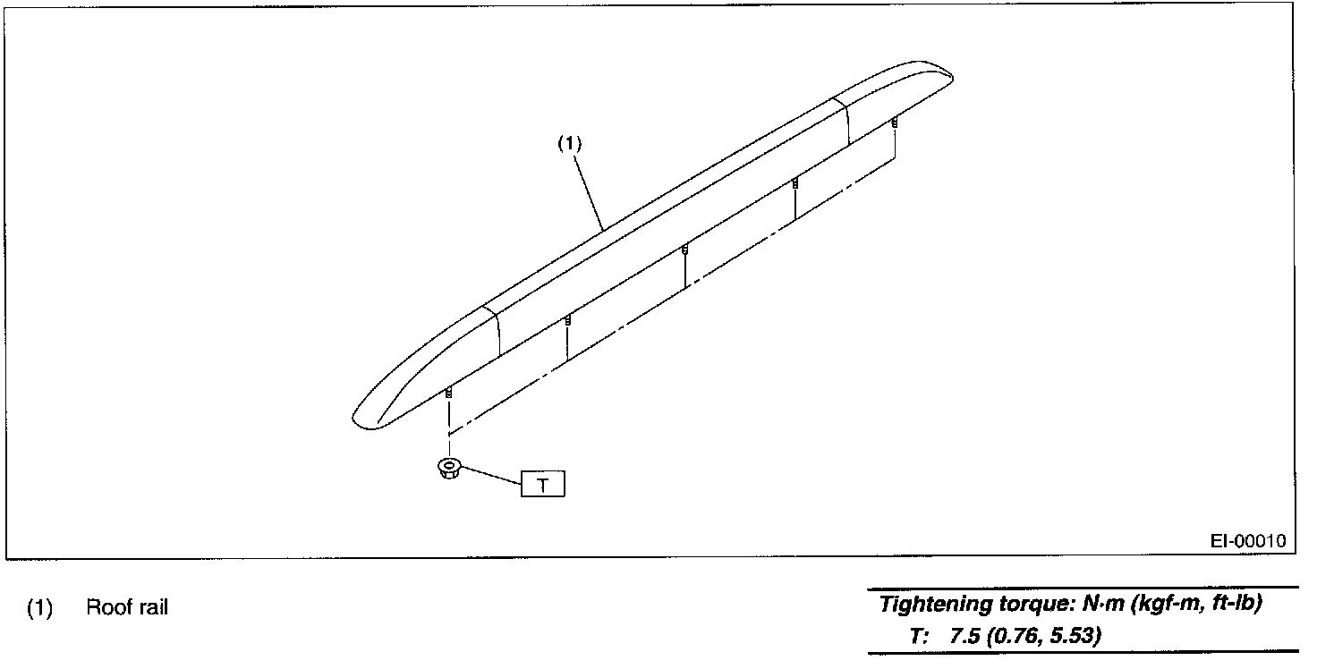 CAUTION: Be careful not to scratch the body panels with roof rail stud bolts when removing and installing them.